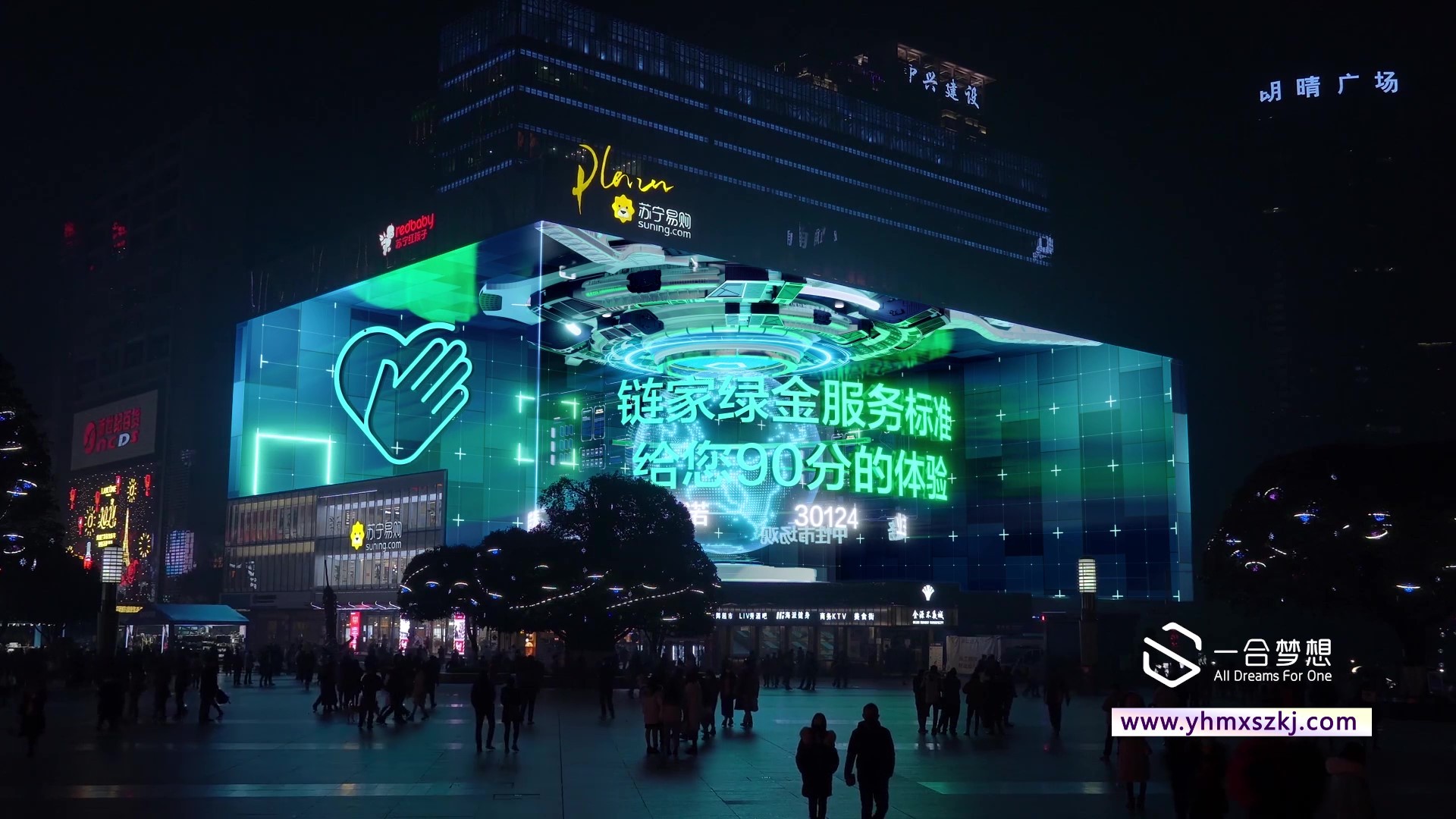 近日,一合梦想为链家地产创作了震撼的“裸眼3D”广告作品,让普通的广告变得时尚而前卫。该作品由1月14日启动,从创意、分镜、制作到投放,历时7天,1月21日作品在重庆观音桥亚洲之光LED大屏上震撼呈现。独特的裸眼3D视觉感受,让行人纷纷驻足拍照。这个仅有15秒的魔幻画面,带给观者强烈的视觉冲击,成为链家地产为重庆这座城市留下的一张视觉名片,为品牌的广告效果带来质的提升。