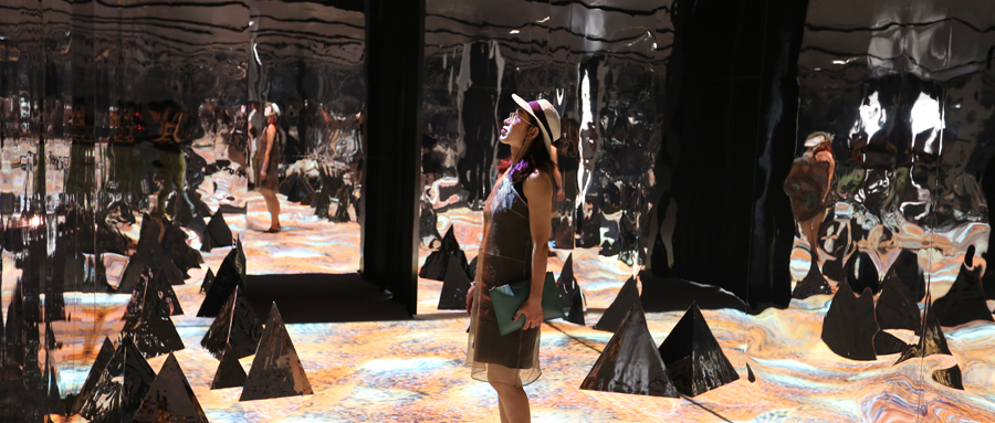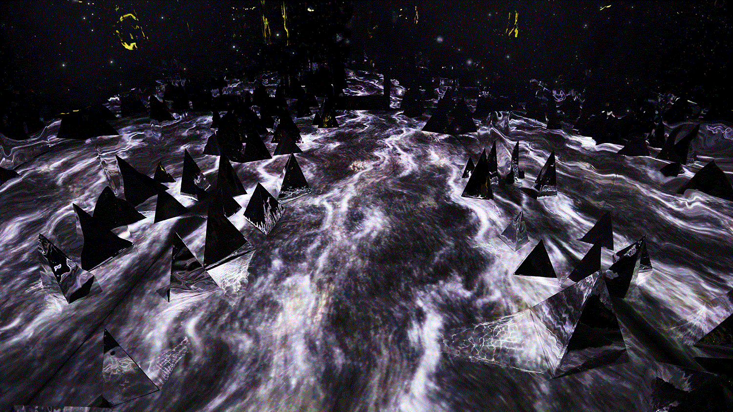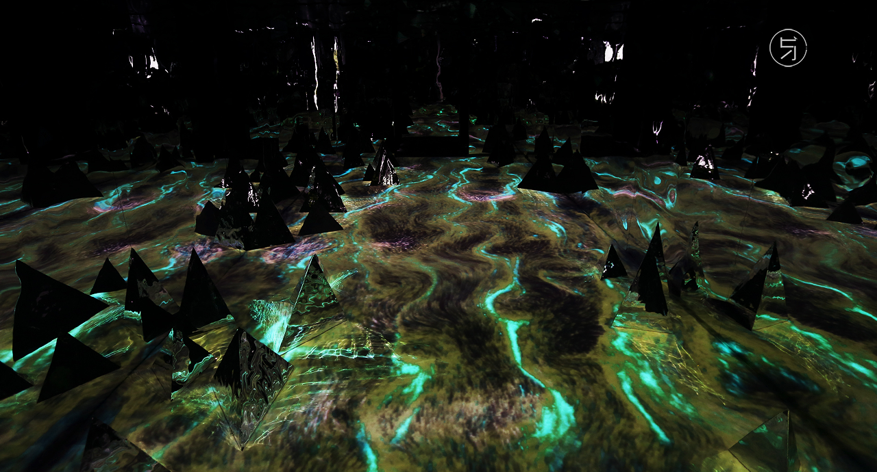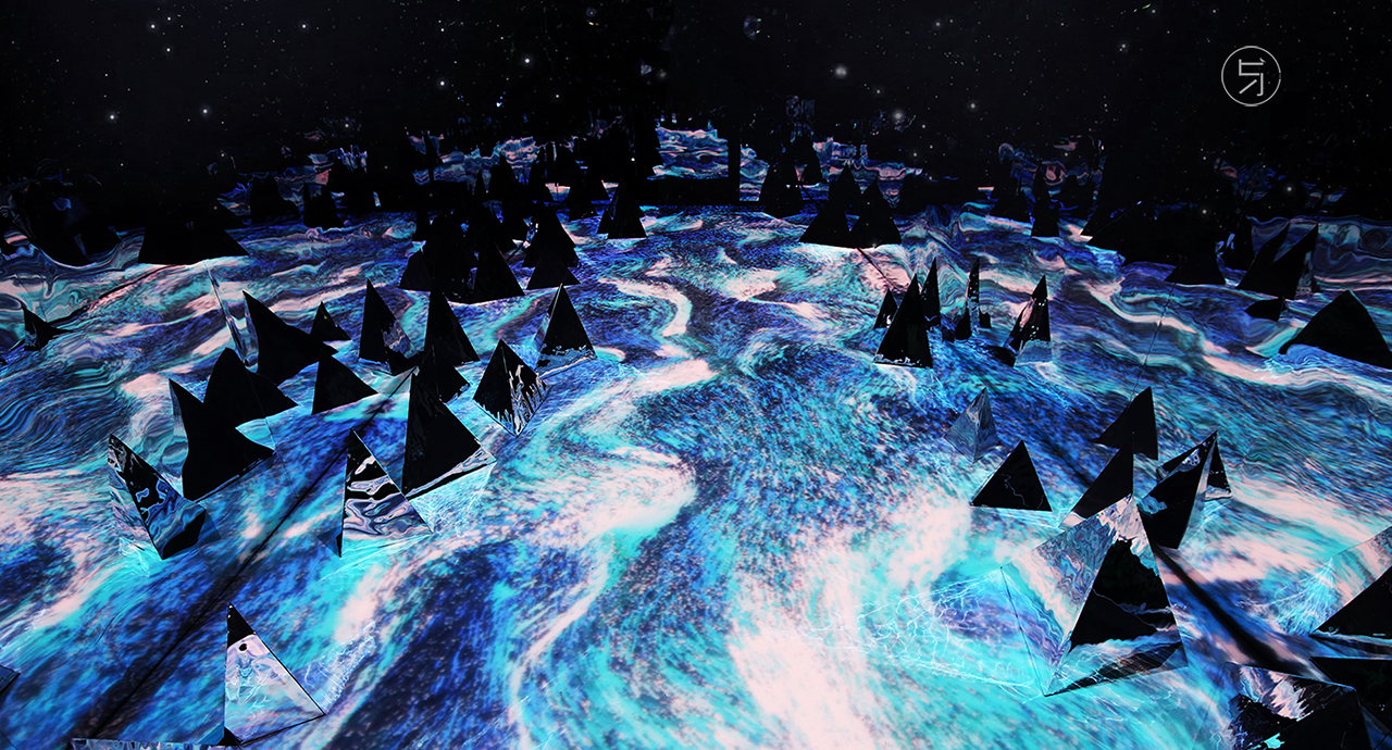 由镜⾯营造出⽆边界空间画⾯由GPU⾼效实时渲染 实现永不重复的延伸和流动
